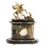 Цветвая гамма камня очень красивая, бронзовая статуэтка Георгия Победоносца также очень украшает часы. Хотя, кажется, бронза лучше бы смотрелась с "античным оттенком", потемнее.